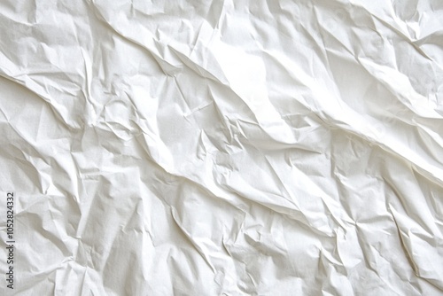 Obraz premium Textured crumpled white paper creating a minimalist backdrop for creative designs or writing in natural light indoors