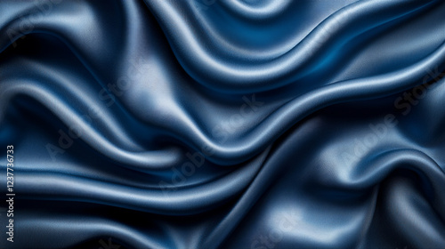 Obraz premium Textured dark blue satin fabric flowing in elegant waves and folds