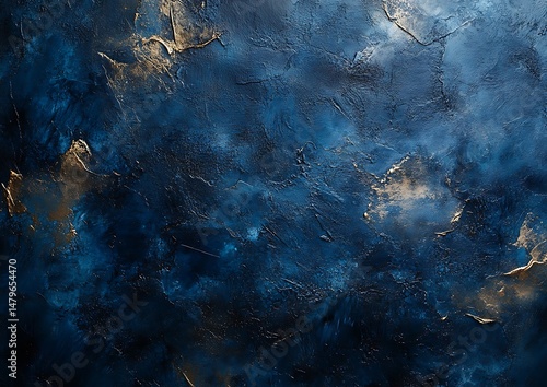 © Aaron, Obraz premium Textured dark blue surface with gold highlights