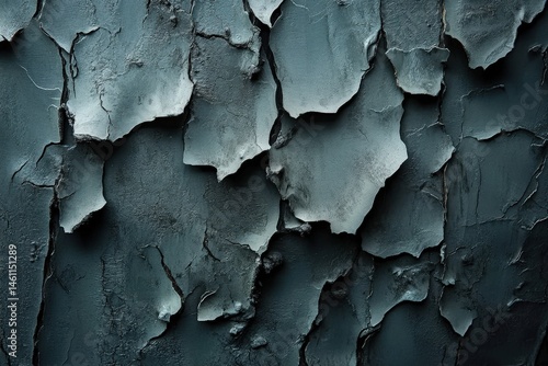 © MrHamster, Obraz premium Textured, dark gray surface with deep cracks and peeling paint.