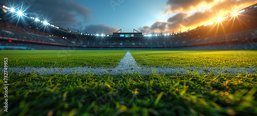 © Vasiliy, Obraz premium textured free soccer field in the evening light - center, midfield