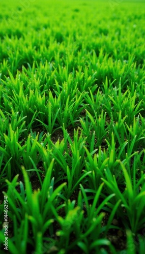 Obraz premium Textured green lawn, asymmetrical cut showing varied heights, natural,...