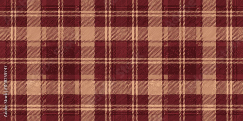 © Skyqun, Obraz premium Textured maroon and beige plaid pattern, ideal for cozy autumn designs.