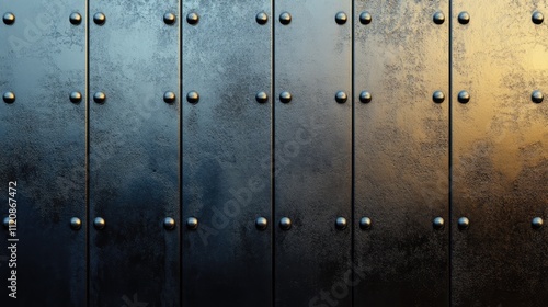 Fototapeta premium Textured metallic surface with rivets and gradient hues, suitable for...