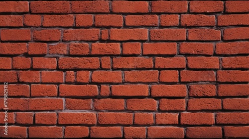 © Viktor, Obraz premium Textured red brick wall in warm lighting. AI generated