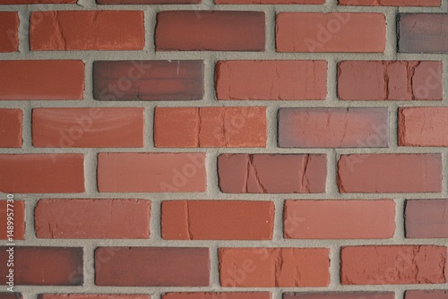 Obraz premium Textured red brick wall showcasing a variety of shades and patterns, adding character and warmth.