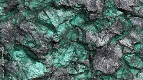 Obraz premium Textured rock surface showing shades of gray and teal, creating a rugged and...