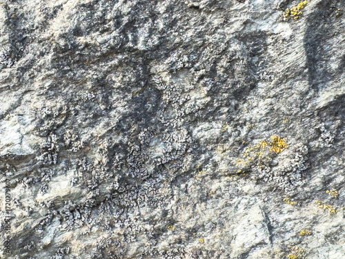 Fototapeta premium Textured rock surface with moss and lichen growth