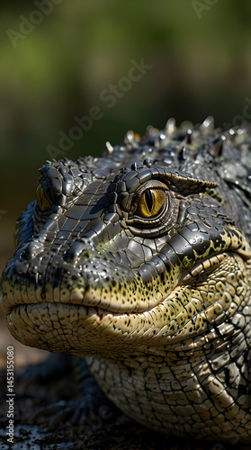 © Adorable Works, Fototapeta premium Textured Scales and Powerful Gaze of Alligator