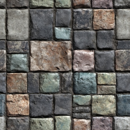 © Annamorphosis, Naklejka premium Textured Seamless Medieval Cobblestone Pavement with Varied Stone Colors.
