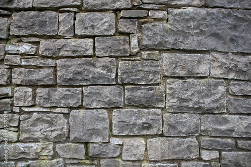 © Matt, Fototapeta premium Textured stone wall background. Square patterns on an old grey wall