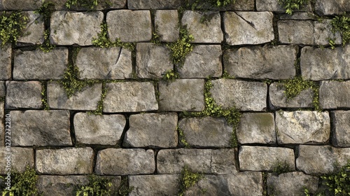 Obraz premium Textured Stone Wall with Greenery and Natural Elements