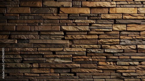 © Puchong, Fototapeta premium Textured stone wall with warm earthy tones.