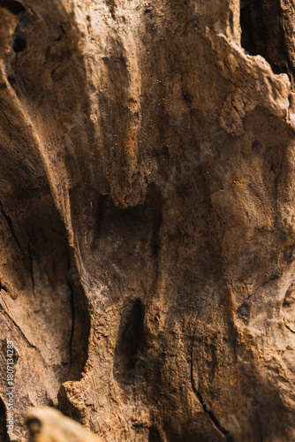 © Supatinee, Obraz premium Textured Surface of Weathered Wooden Log Showing Natural Patterns