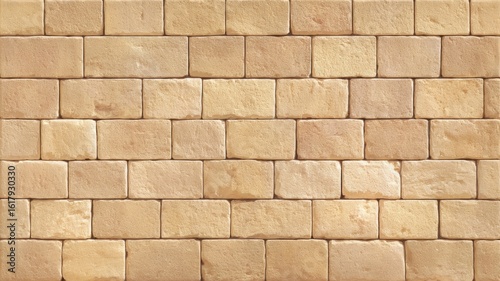 © Marharyta, Naklejka premium Textured tan brick wall patterned in neat rows. Artificial intelligence image