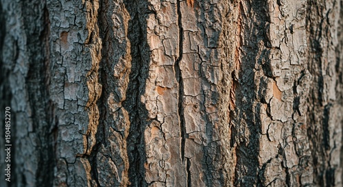 Obraz premium Textured Tree Bark Closeup: Sunlight Illuminates Cracked Surface