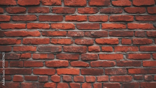 Obraz premium Textured vintage red brick wall with various shades of brown, showcasing a rough surface, arranged in an orderly pattern for a rustic backdrop.