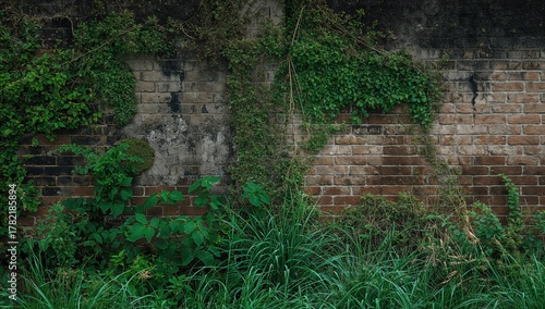 © AkuAku, Naklejka premium Textured wall backdrop with leaves