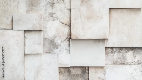 © tinnakorn, Naklejka premium Textured wall featuring abstract geometric shapes in muted colors, creating a modern, minimalist aesthetic.