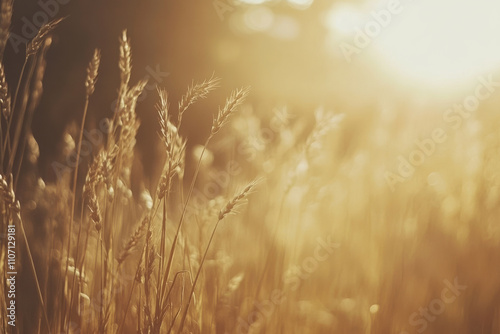 Fototapeta premium Textured wheat field, golden stalks swaying gently under soft sunlight,...