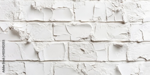 Fototapeta premium Textured white brick wall with a stucco pattern. Abstract background featuring a plaster decorative pattern, relevant for interior design and construction concepts.
