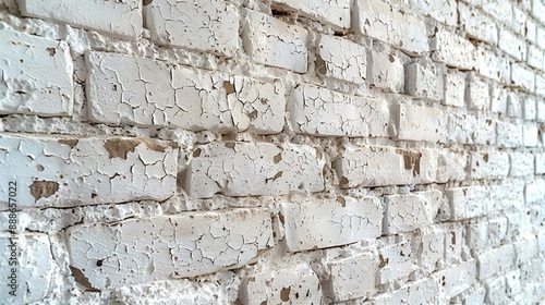 Fototapeta premium Textured white brick wall with natural aging, suitable for farmhouse and...
