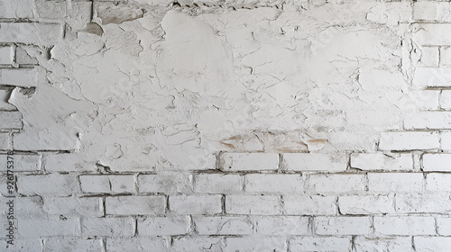 © Sadia, Fototapeta premium Textured white brick wall with peeling paint in an indoor setting