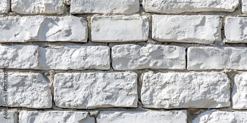 Fototapeta premium Textured white bricks set against a smooth gray wall creating a modern design...