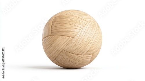 © อาริษา วันดี, Fototapeta premium Textured Wooden Ball with Unique Woven Pattern on a White Background