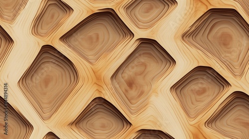 © Aleksander, Obraz premium Textured wooden surface featuring a geometric pattern of recessed diamond shapes, showcasing natural wood grain and warm tones.