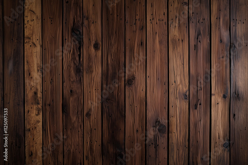 © Marut, Naklejka premium Textured wooden wall with narrow vertical slats, showcasing rich brown tones and natural grain patterns. This rustic backdrop adds warmth and character to any space