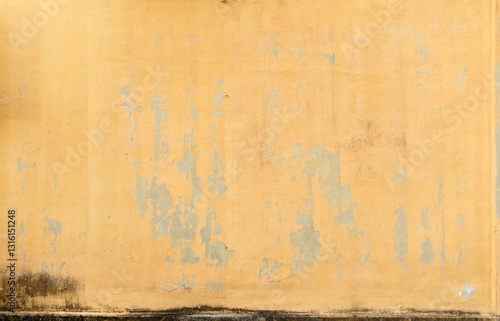 Fototapeta premium Textured Yellow Wall with Peeling Paint, Aged Building Facade
