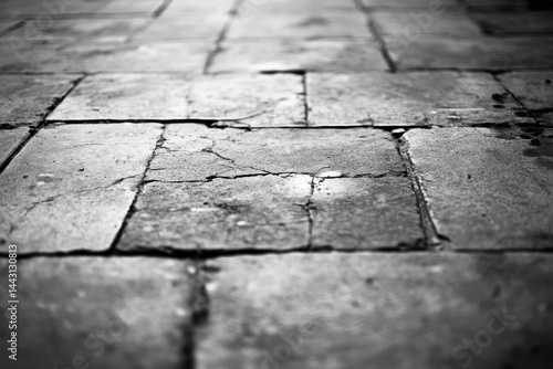 © LENNAMATS, Obraz premium Textures and patterns of cracked stone tiles on an outdoor surface under soft natural light