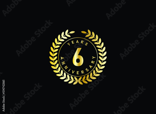 Naklejka premium 6th anniversary celebration with gold glitter color and white background. Vector design for celebrations, invitation cards and greeting cards.