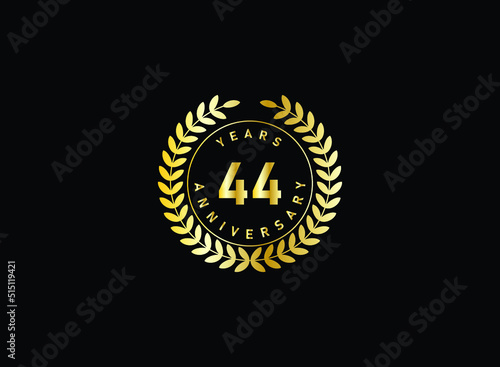 Fototapeta premium 44th anniversary celebration with gold glitter color and white background. Vector design for celebrations, invitation cards and greeting cards.