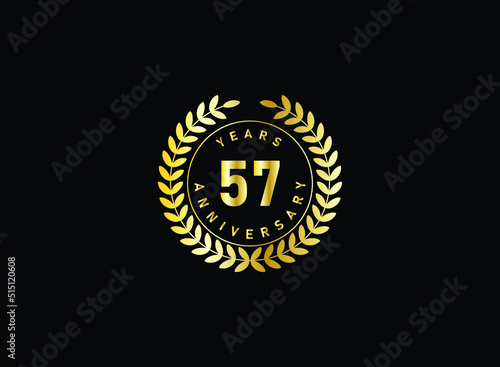 © SIRIYAWATHI, Naklejka premium 57th anniversary celebration with gold glitter color and white background. Vector design for celebrations, invitation cards and greeting cards.
