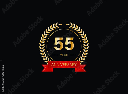 © SIRIYAWATHI, Naklejka premium 55th anniversary celebration with gold glitter color and white background. Vector design for celebrations, invitation cards and greeting cards. eps 10.