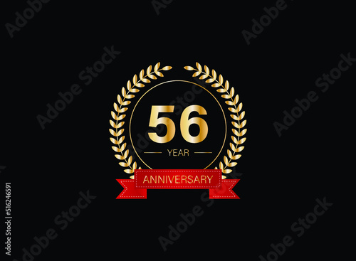 © SIRIYAWATHI, Fototapeta premium 56th anniversary celebration with gold glitter color and white background. Vector design for celebrations, invitation cards and greeting cards. eps 10.
