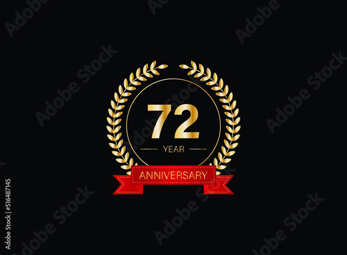 © SIRIYAWATHI, Fototapeta premium 72th anniversary celebration with gold glitter color and white background. Vector design for celebrations, invitation cards and greeting cards. eps 10.