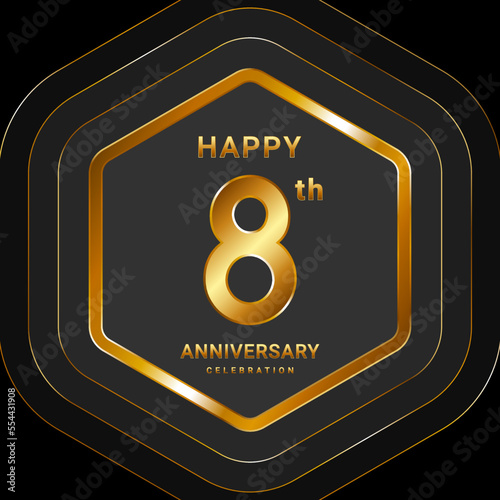 Obraz premium 8th Anniversary. Golden Anniversary With Hexagon Style For Celebration Event. Logo Vector Illustration