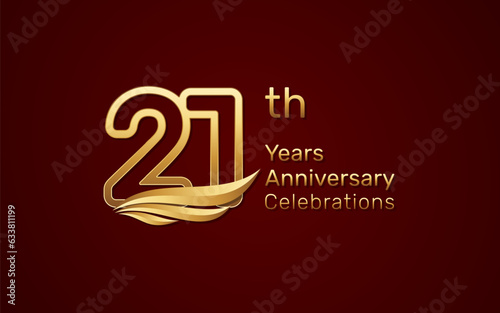 Obraz premium 21th anniversary logo design with double line number style and golden wings, vector template