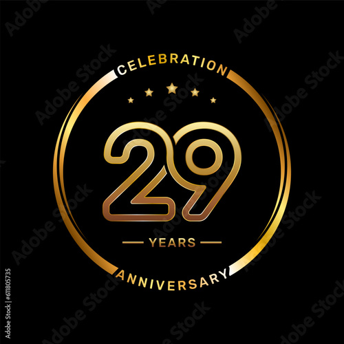 Fototapeta premium 29th anniversary logo with double line number style and gold color ring, logo vector template