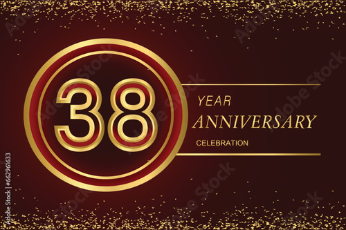 © Thinudi Art, Fototapeta premium 38th anniversary logo with gold double line style decorated with glitter and confetti Vector EPS 10