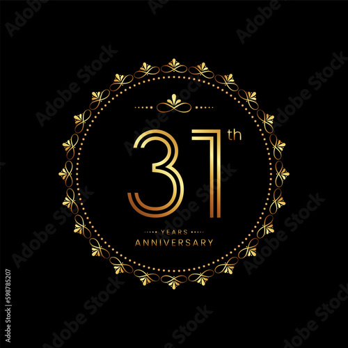 Naklejka premium 31th anniversary logo with golden number for celebration event, invitation, wedding, greeting card, banner, poster, flyer. Ornament vector design