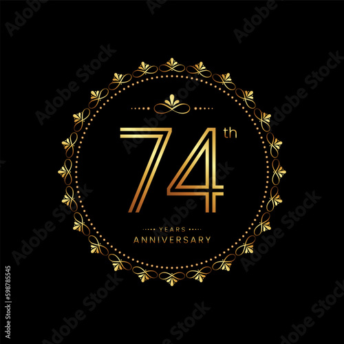 Fototapeta premium 74th anniversary logo with golden number for celebration event, invitation, wedding, greeting card, banner, poster, flyer. Ornament vector design