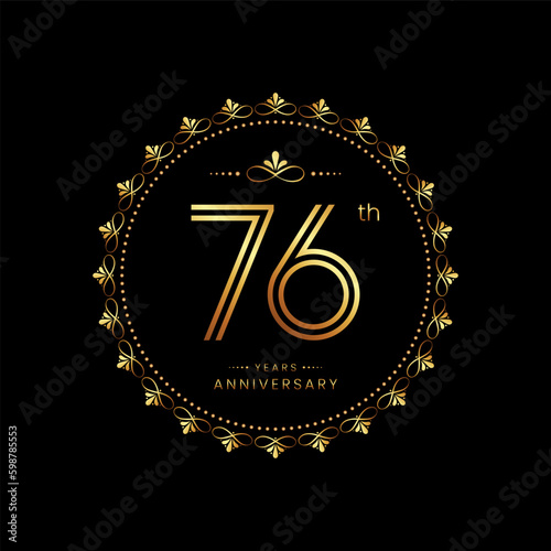Fototapeta premium 76th anniversary logo with golden number for celebration event, invitation, wedding, greeting card, banner, poster, flyer. Ornament vector design