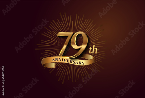 © Vectorideas, Fototapeta premium 79th anniversary logotype with fireworks and golden ribbon, isolated on elegant background. vector anniversary for celebration, invitation card, and greeting card