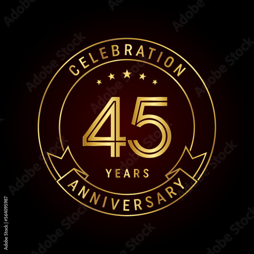 Fototapeta premium 45th anniversary template design concept with golden ribbon for anniversary celebration event. Logo Vector Template