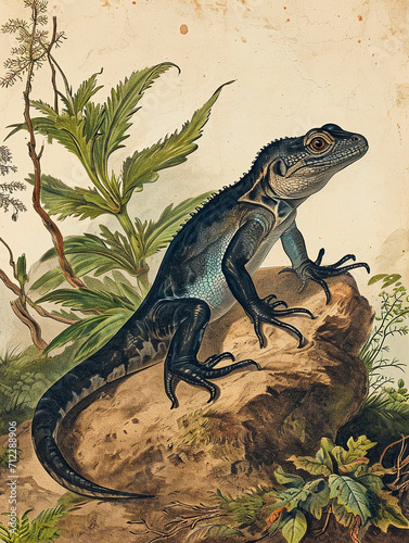 © Dar1930, Naklejka premium 18th century book engravings depicting fauna and flora. AI generative.