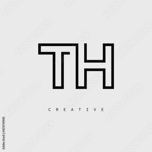 © Mansura, Obraz premium TH Creative Letter Logo – Minimal Line Monogram in Black Outline for Modern Branding Identity Design.